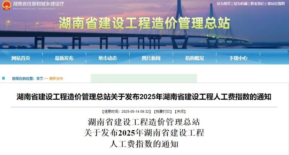 注意!2025年湖南省建設工程人工費指數發(fā)布,6月1日起執(zhí)行!